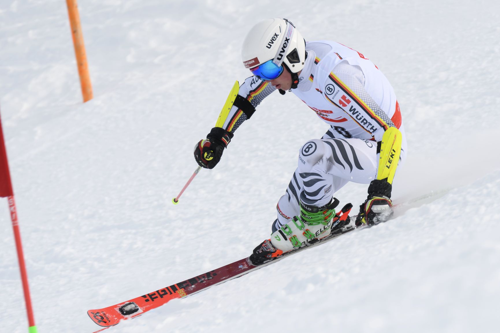 - sportlicher Skischuh oder Rennskischuh (kein Freeride Skischuh)